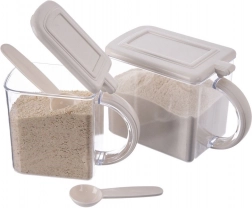 Per il massimo comfort, il contenitore ha una maniglia ergonomica per un facile trasporto, un pratico cucchiaino per dosare con precisione e un coperchio con cerniera che si apre comodamente proteggendo al contempo il contenuto dall’umidità. Aiuta a mantenere l’ordine in cucina, a casa e nella ristorazione.