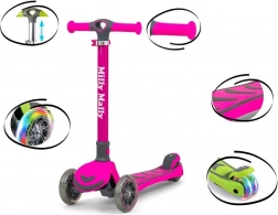 Il monopattino per bambini Milly Mally Boogie in colore rosa offre una struttura in alluminio leggera e resistente, un design a tre ruote stabile e ruote in PU luminose per una guida sicura e divertente. Grazie al manubrio regolabile, alla pedana antiscivolo e al freno posteriore è ideale per bambini dai 3 anni fino a 50 kg.