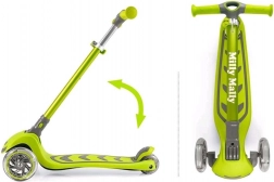 Il monopattino Milly Mally Boogie è un’ottima scelta per i bambini attivi che amano muoversi. La sterzata basata sul trasferimento dell’equilibrio sviluppa motricità e coordinazione, mentre le tre ruote (doppie posteriori) offrono maggiore stabilità e sicurezza durante la guida. Le ruote anteriori luminose aggiungono un tocco extra di divertimento a ogni uscita.