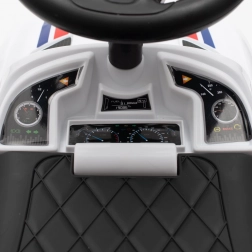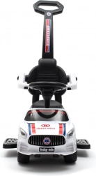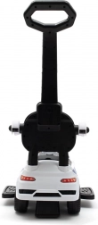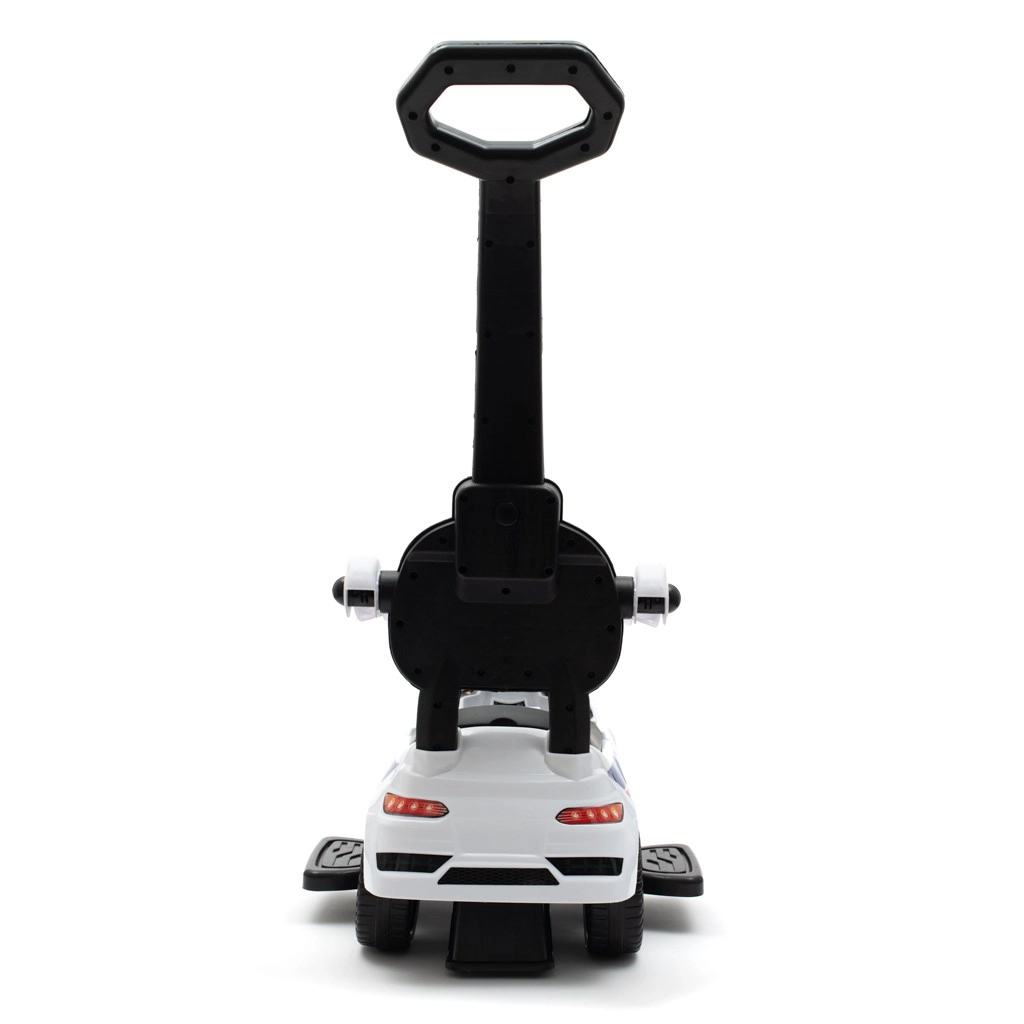I genitori apprezzeranno la pratica asta di guida per controllare la direzione, i braccioli rimovibili e le pedanine ribaltabili per i bambini più piccoli. Quando il piccolo pilota cresce, gli elementi possono essere facilmente rimossi e l’auto può essere usata come classico spingi-bici. Sotto il sedile è presente un vano portaoggetti per i piccoli tesori.