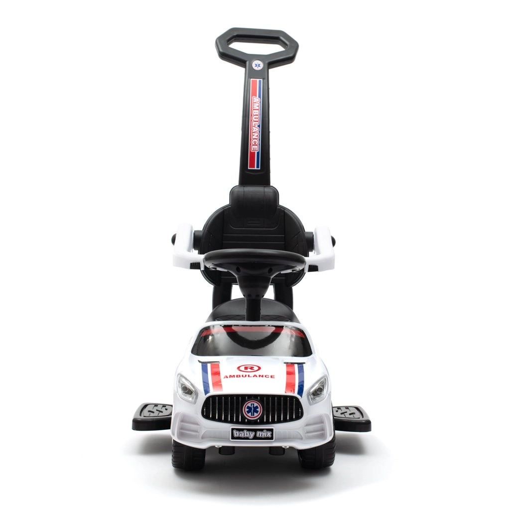 Scoprite lo spingi-bici Baby Mix bianco in stile veicolo di soccorso, che colpisce per i dettagli realistici, la comoda seduta profilata e la struttura stabile. Le ruote anteriori piroettanti facilitano le manovre, mentre lo schienale alto e gli elementi di sicurezza garantiscono comfort e sicurezza durante la guida.