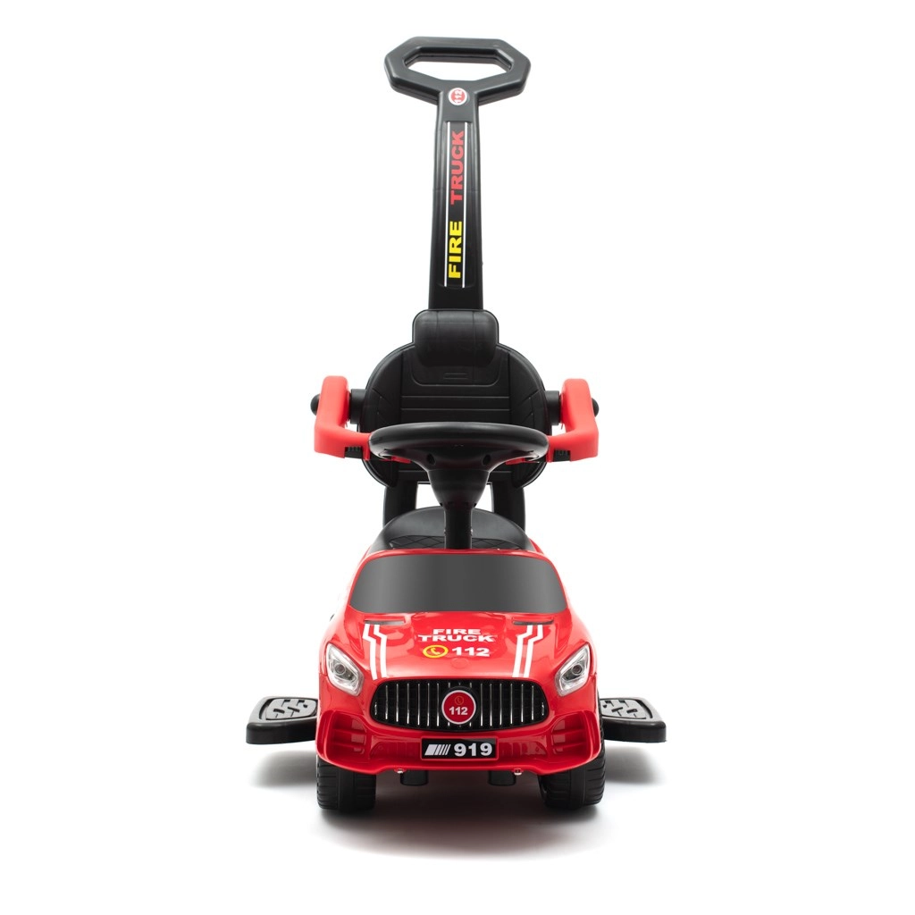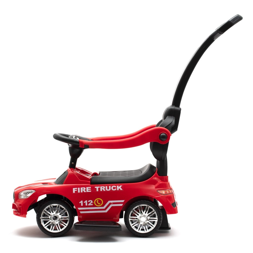 Biciclettina senza pedali con asta di guida BABY MIX pompieri, rossa