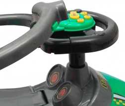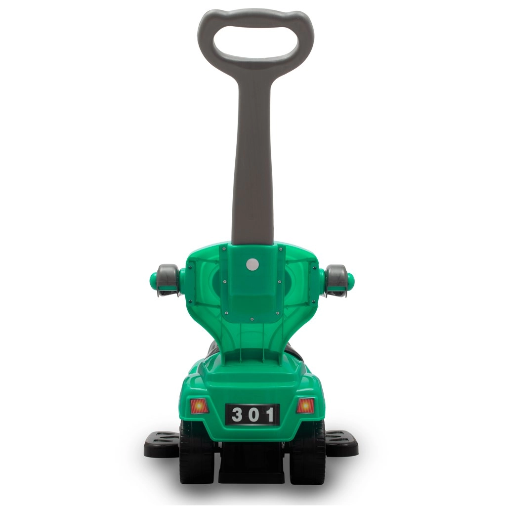 Il veicolo multifunzione 3 in 1 BABY MIX Mega Car in colore verde unisce in uno passeggino a spinta, cavalcabile e primi passi. Offre manico di guida per i genitori, protezioni laterali di sicurezza, poggiapiedi rimovibili e volante musicale con clacson. Grazie alla struttura stabile e al vano portaoggetti sotto il sedile è ideale per bambini da 12 a 36 mesi.