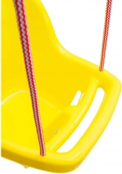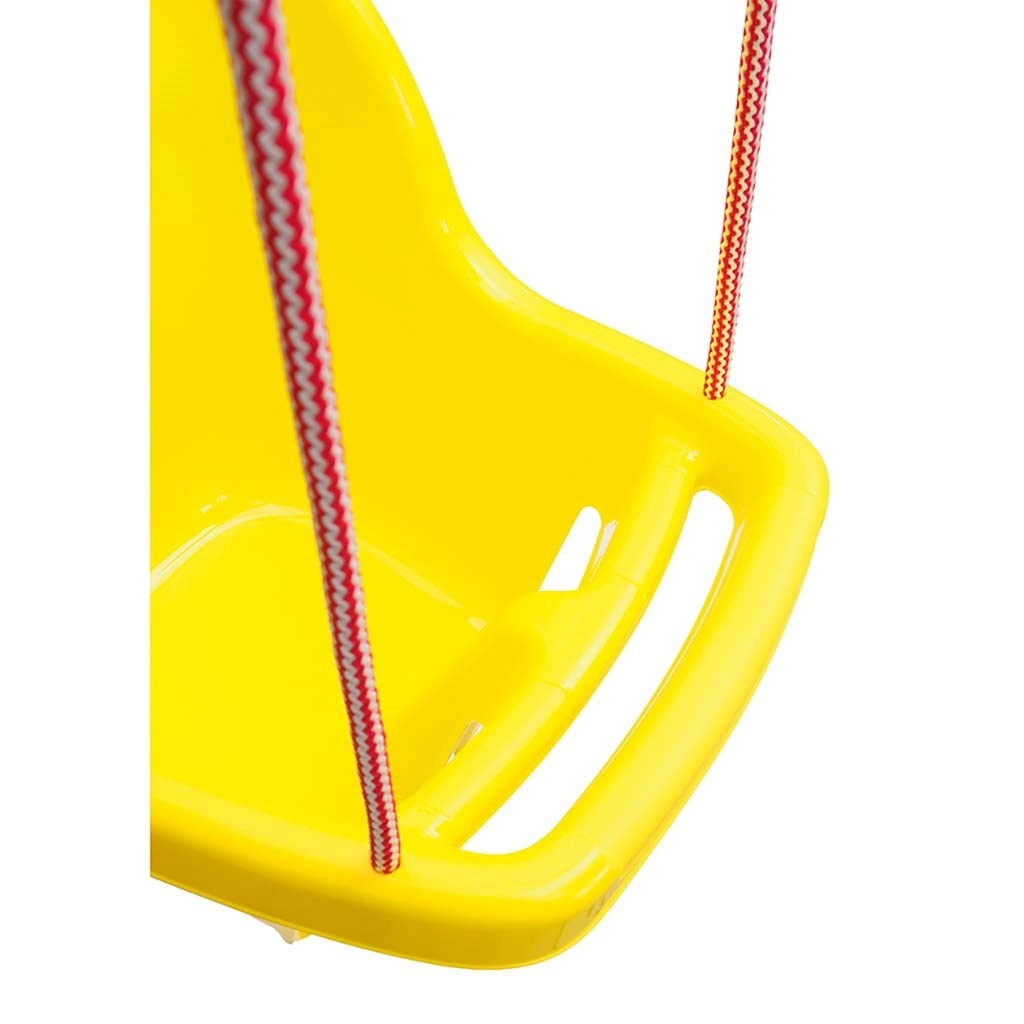 Dondolio sicuro e confortevole per i più piccoli. Questa altalena gialla per bambini offre un schienale alto, plastica resistente e indelebile e corde regolabili per un facile fissaggio in casa e in giardino. Adatta ai bambini dai 2 anni, con carico massimo 30 kg.