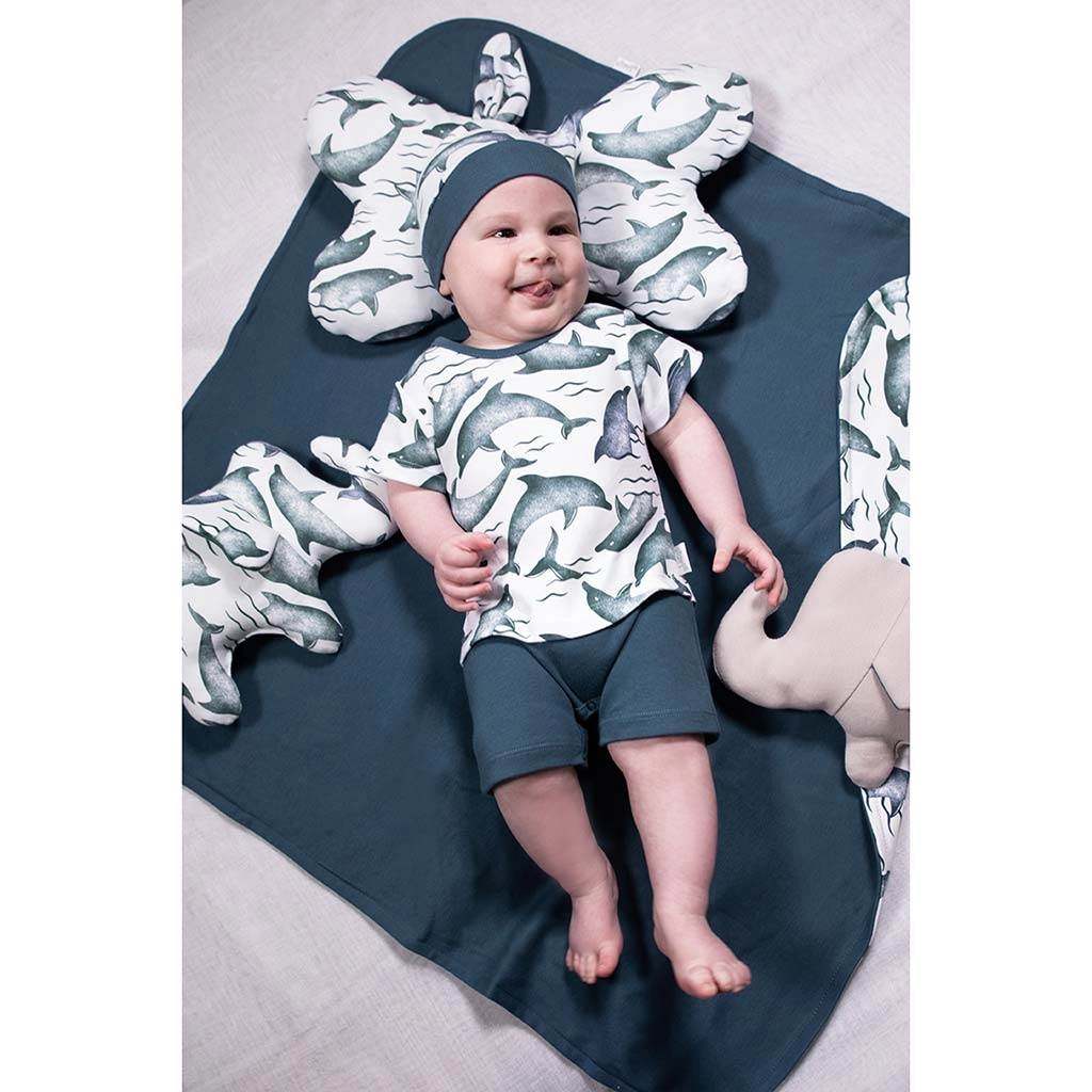 Grazie al bordo elastico, il cappellino si adatta perfettamente, non scivola ed è facile da indossare. La stampa con delfini dona un look giocoso che piacerà a genitori e bambini.