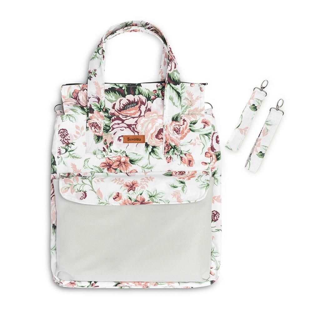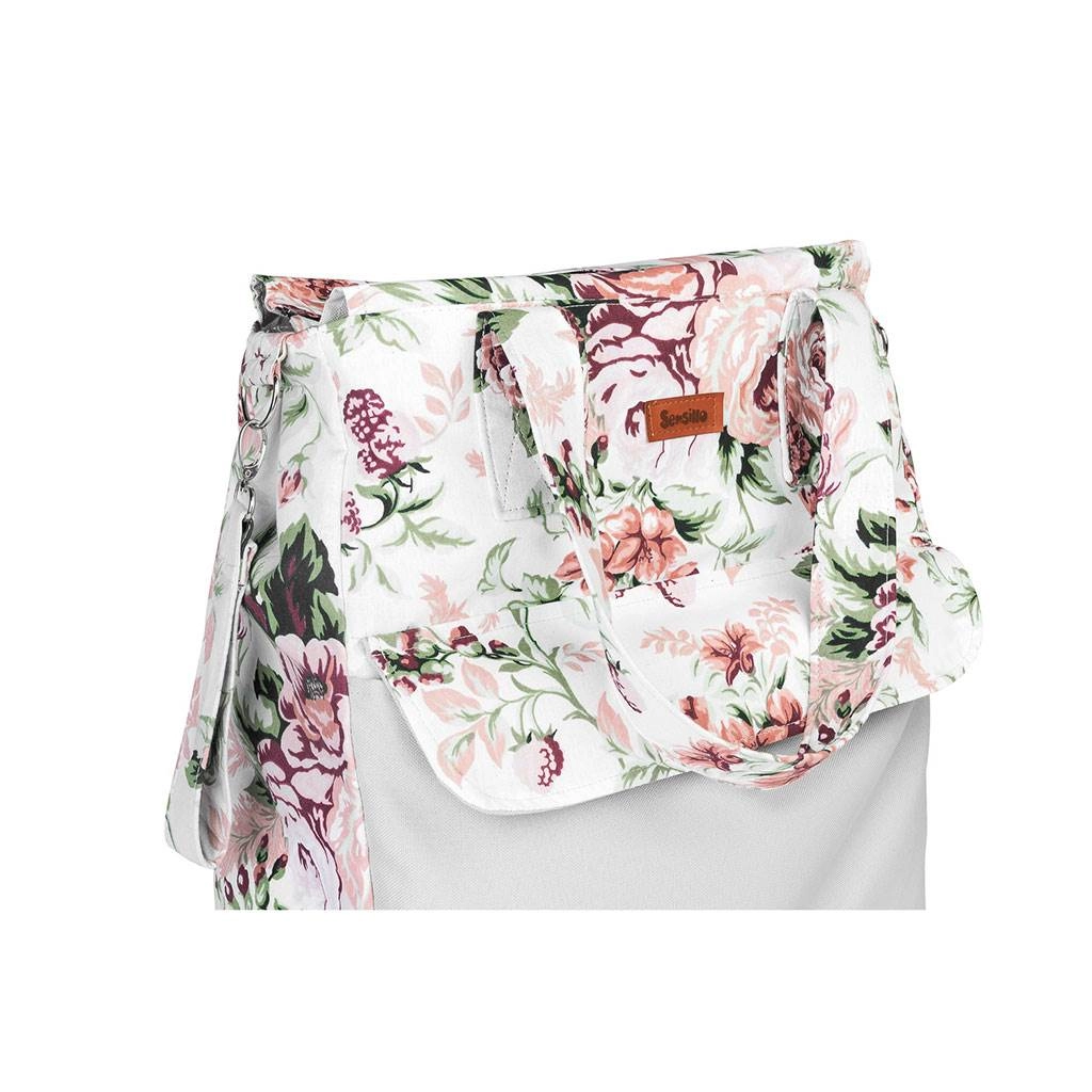 Borsa per mamme Sensillo dallo stile elegante e capiente con motivo Prato verde, offre spazio a sufficienza per tutto il necessario per passeggiate, acquisti e per l’ospedale. Dispone di scomparto principale con cerniera, pratica tasca frontale con chiusura magnetica per un accesso rapido e manici resistenti per un trasporto confortevole o per appenderla al passeggino.