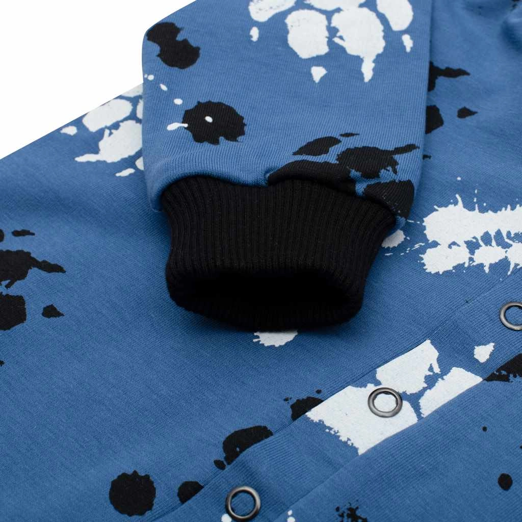 La pratica chiusura a bottoncini a pressione su tutta la lunghezza facilita la vestizione e il cambio. La fodera in cotone su tutto l’interno riscalda piacevolmente, mentre gli ampi polsini elastici su maniche e gambine mantengono il capo in posizione e proteggono dal freddo.