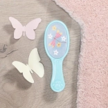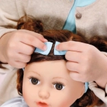 La bambola ha capelli castani che puoi pettinare con una spazzola blu e creare diversi acconciature.