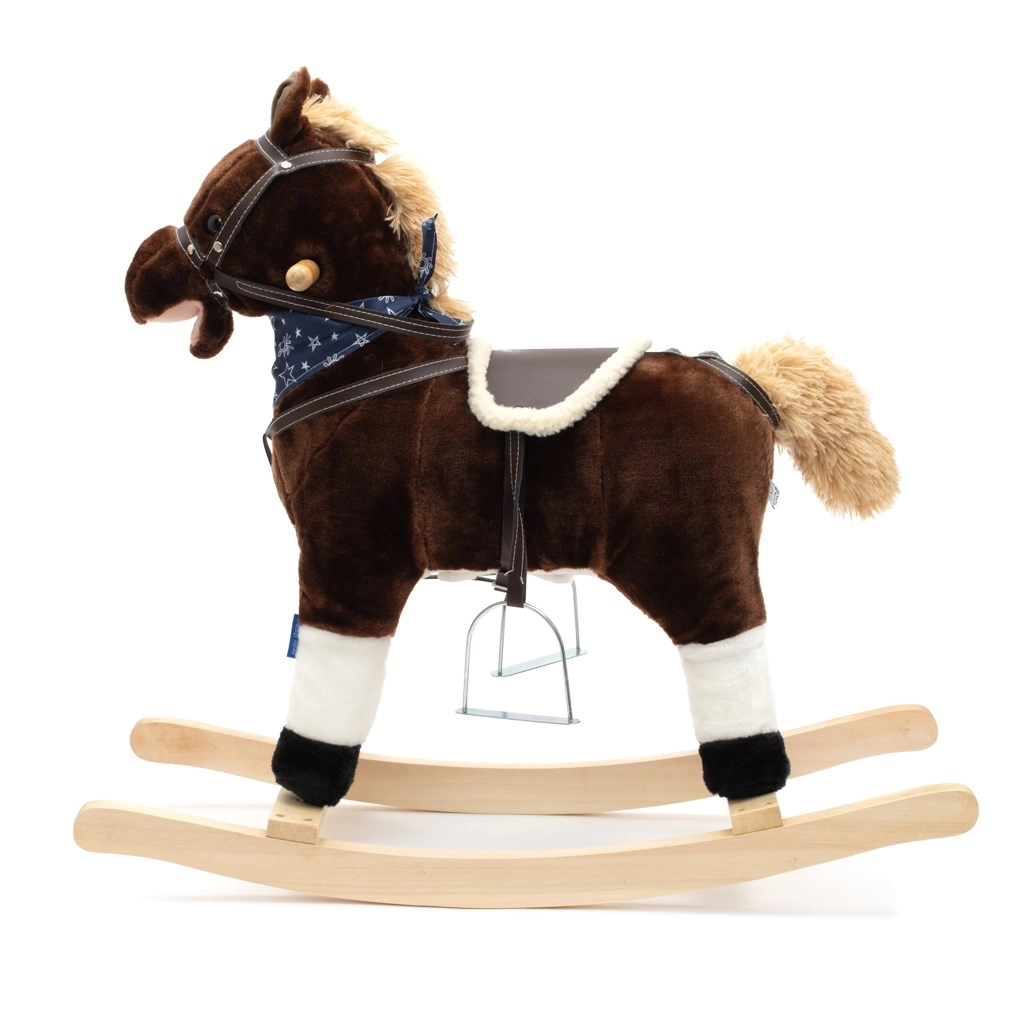 Il cavallino a dondolo Baby Mix offre ai bambini un’esperienza di cavalcata autentica. È realizzato in morbido peluche, ha un elegante foulard e pulsanti nascosti nelle orecchie che attivano suoni di galoppo, nitrito, movimento della coda e della bocca e anche una canzone da cowboy. Le guide a dondolo in legno sagomate impediscono il ribaltamento, mentre le staffe in metallo, le impugnature e la sella confortevole assicurano comfort e stabilità durante il dondolio.