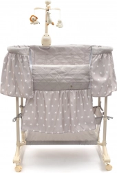 Culla e lettino 2 in 1 pratici e sicuri del marchio New Baby per un sonno confortevole e un dondolio tranquillo. Offre regolazione in altezza a 4 livelli, mobilità grazie alle ruote con bloccaggio, tettuccio rimovibile e giostrina con luce, melodie e vibrazioni. Il rivestimento traspirante è facilmente removibile e lavabile; il cesto portaoggetti inferiore tiene tutto a portata di mano.