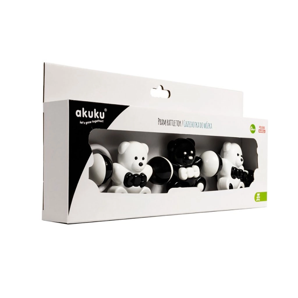 Il sonaglino Akuku in bianco e nero con orsetti è progettato per i più piccoli, aiutando a sviluppare vista, udito e motricità. I colori a contrasto catturano l’attenzione del bebè, il tintinnio delicato calma e stimola i sensi. Il giocattolo è leggero, piacevole al tatto e facile da mantenere pulito.