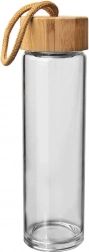 Questa bottiglia dal design elegante unisce linee pulite e praticità per l’uso quotidiano. Il vetro borosilicato è leggero, resistente e tollera gli sbalzi termici, così puoi gustare acqua, succhi, limonate e tè caldo. Il tappo in bambù naturale con robusta asola facilita il trasporto e dona un look ecosostenibile.