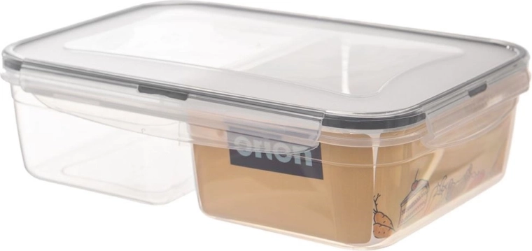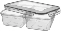 Pratico contenitore per alimenti da 2 l con coperchio robusto, quattro clip e guarnizione in silicone per una tenuta perfetta. Grazie a due scomparti separati mantiene sapori e odori distinti, è senza BPA, adatto a lavastoviglie, microonde (senza coperchio), frigorifero e congelatore e resiste a temperature da -25 °C a +95 °C.