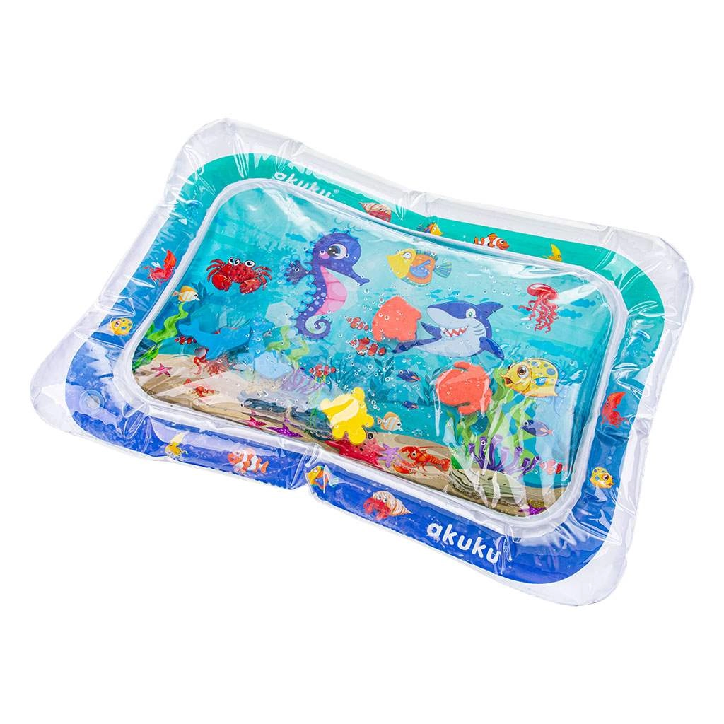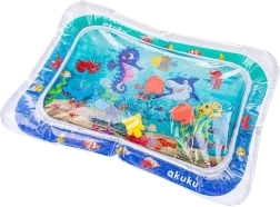 Il tappetino d’acqua interattivo Akuku mondo marino è progettato per stimolare i sensi in modo ludico e sostenere il corretto sviluppo del bambino. Grazie al centro riempito d’acqua e ai cinque animaletti galleggianti, il bebè esercita la coordinazione dei movimenti, il tracciamento visivo e migliora l’equilibrio. Allo stesso tempo avviene un delicato rafforzamento dei muscoli di testa, collo, spalle, schiena e addome.