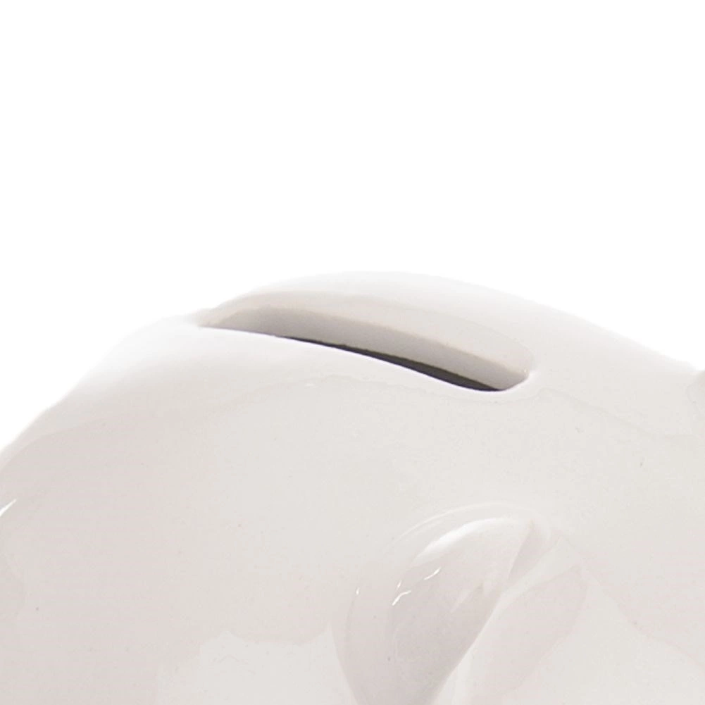 Minimalista salvadanio bianco a forma di maialino con profilo discreto di foglia di trifoglio, ideale per riporre quotidianamente monete e banconote. Grazie alla ceramica robusta e alla smaltatura liscia ha un aspetto elegante e si adatta perfettamente alla cameretta dei bambini, all’ufficio o al soggiorno.