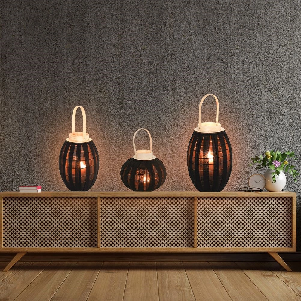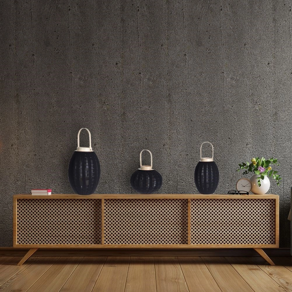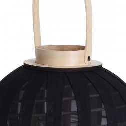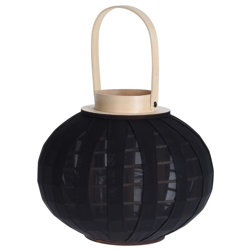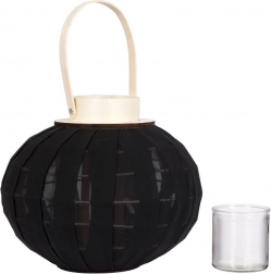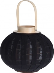 Elegante lanterna nera con manico in legno naturale che crea un’atmosfera piacevole e custodisce in sicurezza la fiamma nel cilindro di vetro. Grazie alle dimensioni compatte di 22 × 24 cm è adatta al tavolo, alla mensola e come decorazione per terrazza o balcone.