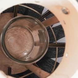 La struttura resistente con intreccio tessile diffonde dolcemente la luce e valorizza sia lo stile moderno sia quello industriale (loft). Il cilindro in vetro inserito, con diametro di 8 cm, accoglie una candela fino a circa Ø 6,5 cm.