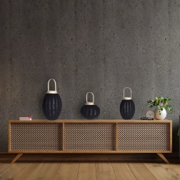 Il tessuto nero sulla struttura a coste crea un aspetto moderno e industriale e diffonde delicatamente la luce.
