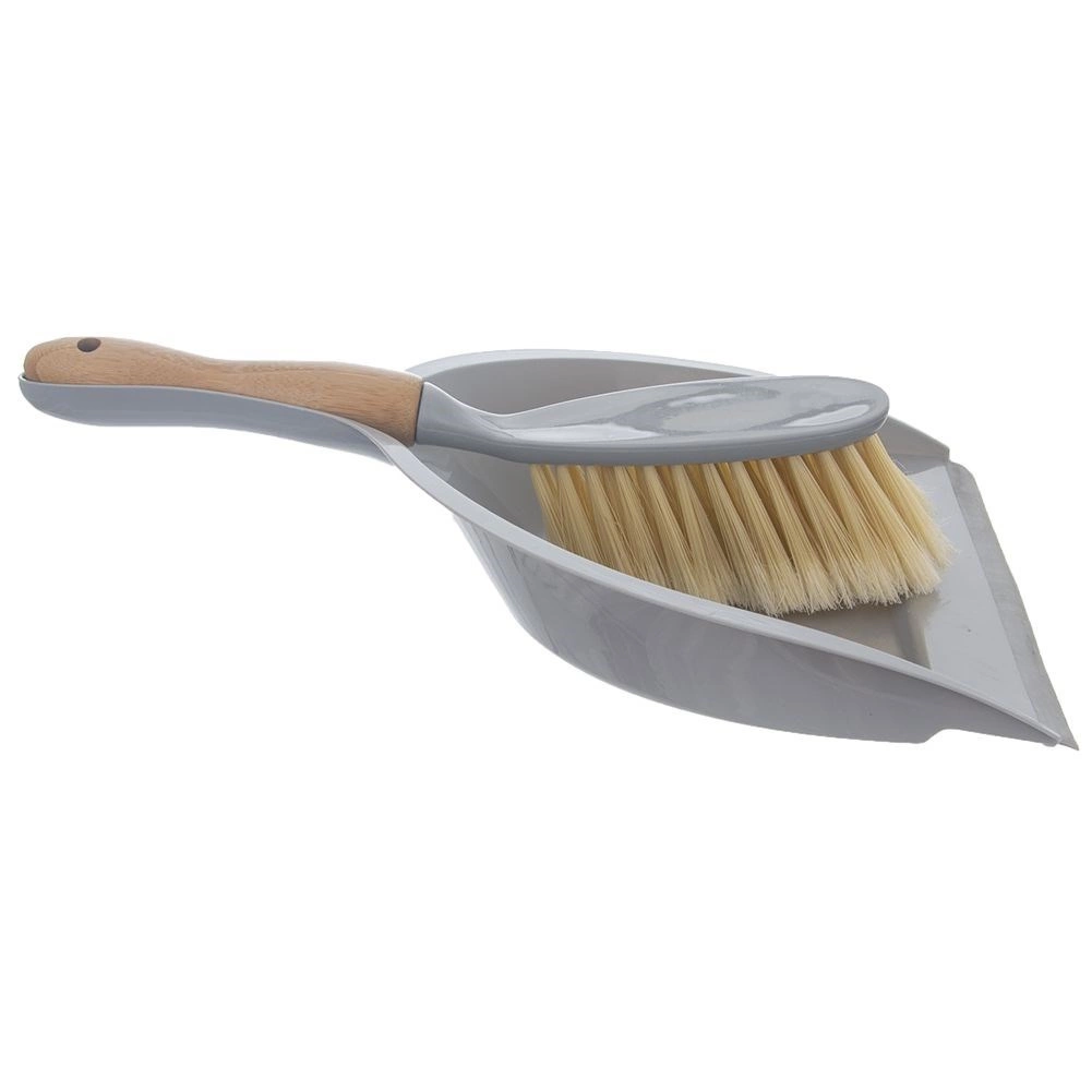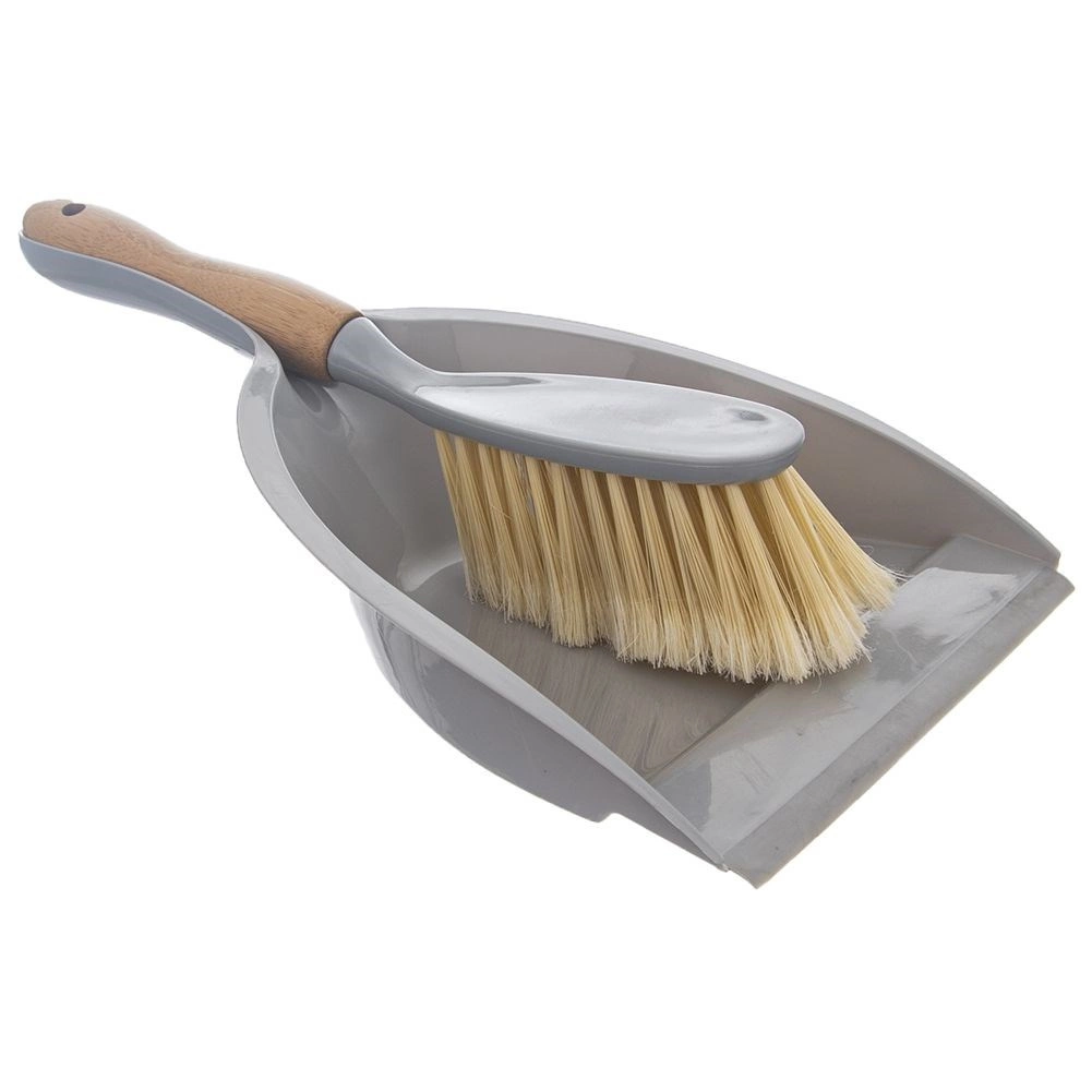 Set elegante e resistente per la pulizia quotidiana. La paletta in plastica grigia di qualità ha un vassoio ampio e profondo e un bordo in gomma largo 1 cm, che aderisce perfettamente al pavimento e impedisce la fuoriuscita dello sporco. La spazzola con manico in bambù offre un’ottima presa e le sue setole fitte e morbide raccolgono efficacemente anche la polvere fine.