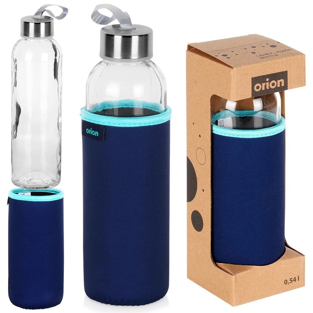 Pratica bottiglia in vetro da 540 ml con tappo a vite in acciaio inox e laccetto, ideale per l’idratazione quotidiana. Grazie alla custodia in neoprene di colore blu scuro, la bevanda rimane più a lungo alla temperatura desiderata e la bottiglia è meglio protetta durante il trasporto. Chiusura ermetica, vetro borosilicato resistente e facile trasporto la rendono una compagna perfetta per il lavoro, lo sport e i viaggi.