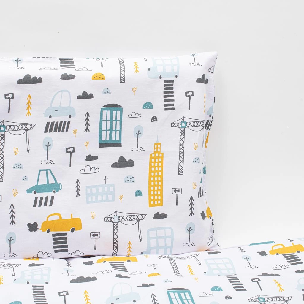 Set biancheria da letto 3 pezzi per lettino NEW BABY Città, senape, 90 × 120 cm