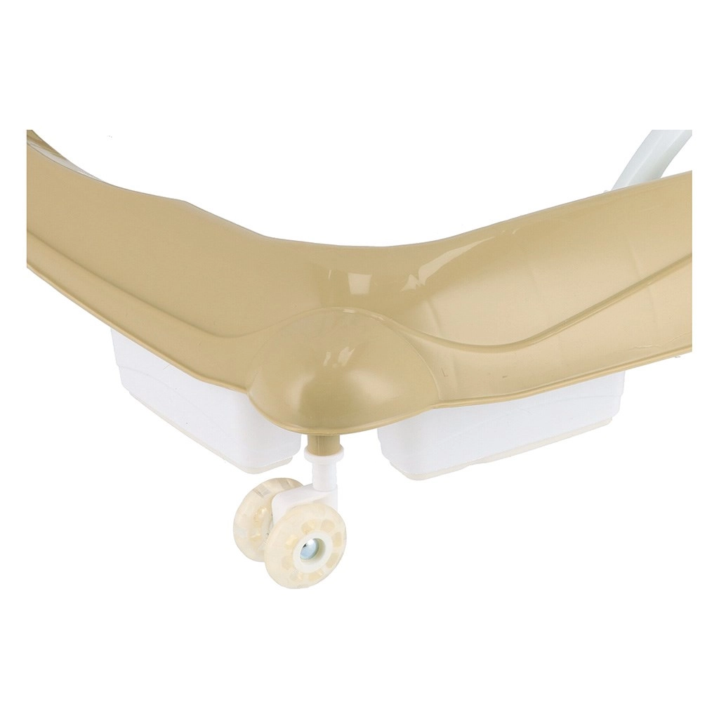 Grazie alla regolazione dell’altezza a 3 livelli si adatta facilmente alla statura attuale del bambino. Le ruote anteriori in silicone piroettanti a 360° sono silenziose e non danneggiano il pavimento, mentre le ruote posteriori in gomma aumentano la stabilità. La base robusta e il particolare sistema anti-ribaltamento proteggono durante lo spostamento e l’apprendimento della camminata. La struttura è pieghevole per ridurre l’ingombro.