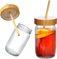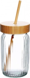Bottiglia in vetro zigrinato per bevande con tappo in bambù e cannuccia 500 ml