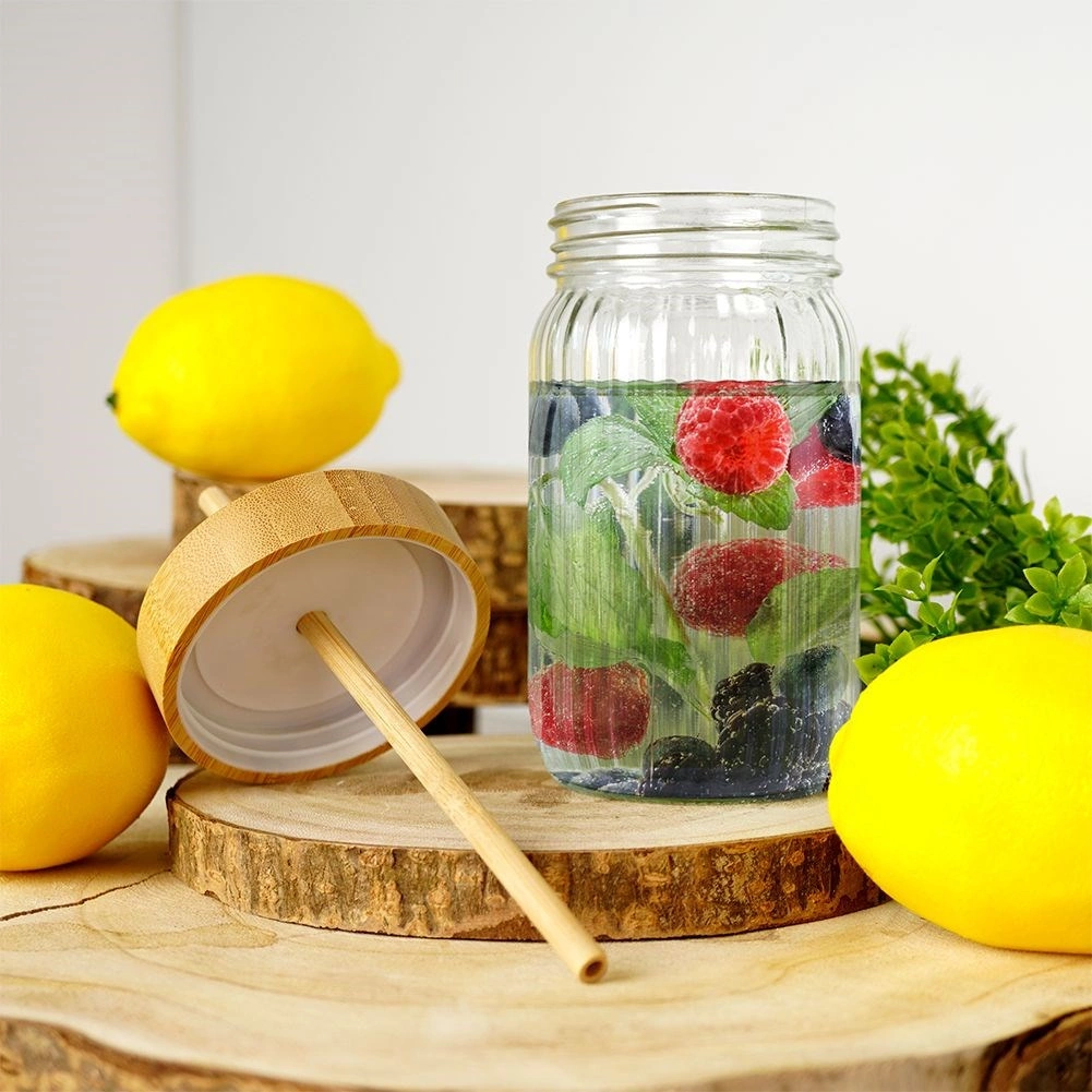 Il bambù naturale aggiunge stile e riduce l’uso di plastica monouso. Il tappo con filettatura tiene saldamente e protegge da impurità e insetti.