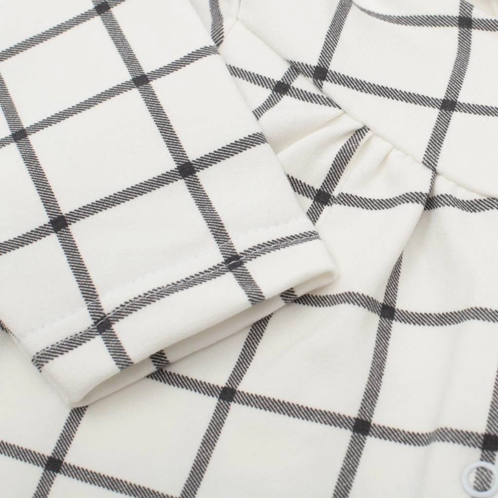 La base bianca con motivo a quadri grigio si combina facilmente con altri capi del guardaroba dei bambini.