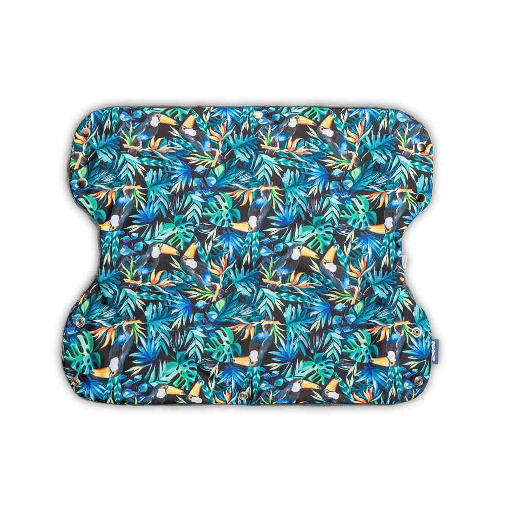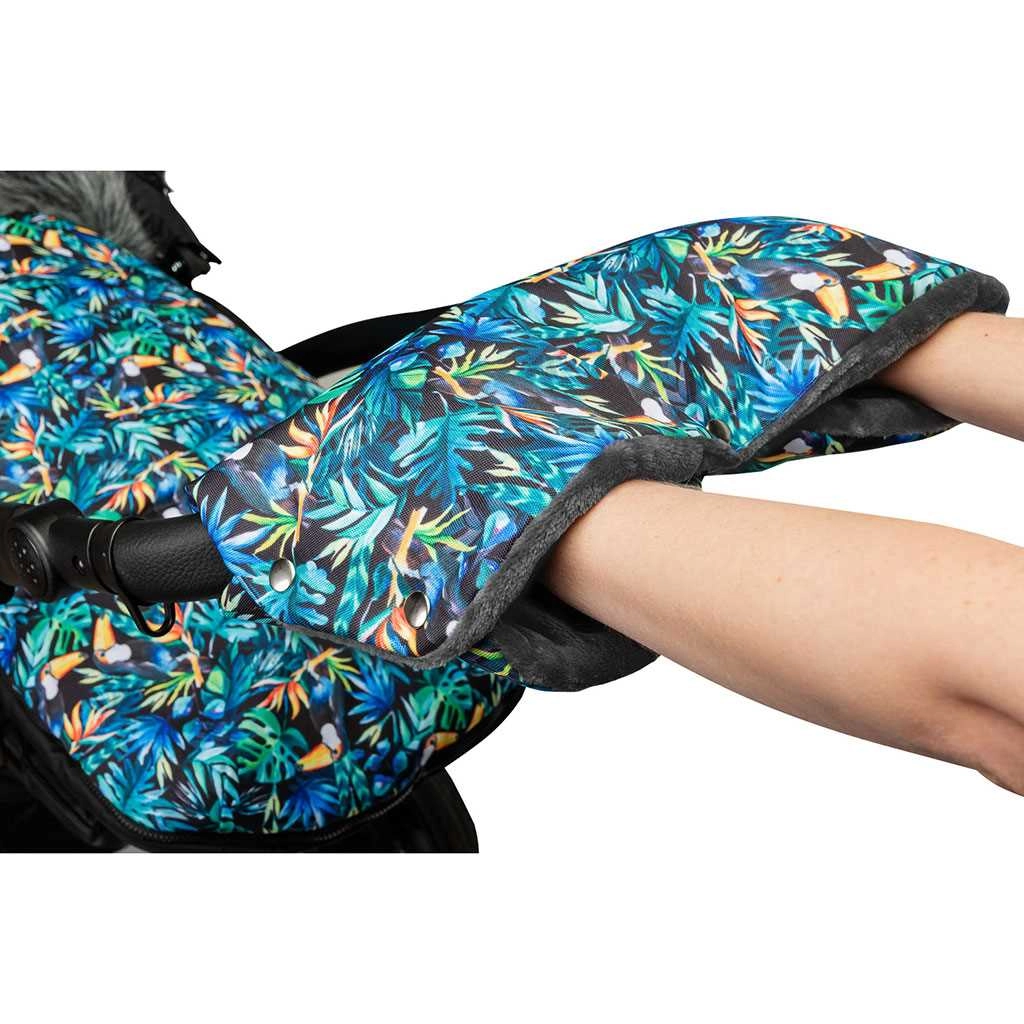 Pratico scaldamani per passeggino SENSILLO con motivo tropicale di tucani che mantiene le mani al caldo anche senza guanti. Grazie ai materiali di qualità con eccellenti proprietà termoisolanti protegge in modo affidabile da freddo, vento e pioviggine. Facile fissaggio con bottoni a pressione e morbida fodera calda per il massimo comfort durante ogni passeggiata.