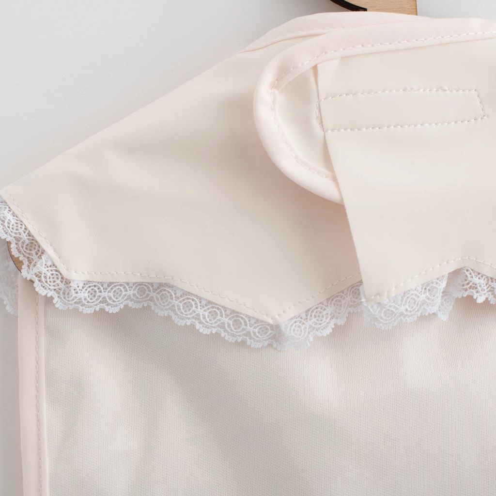 Il elegante bavaglino per bambina NEW BABY con delicato pizzo unisce un bel design ad alta funzionalità. Grazie al morbido 100% poliestere è leggero, delicato sulla pelle dei bambini e facile da mantenere: basta passarlo con un panno umido o lavarlo in lavatrice.