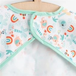 Il bavaglino–grembiule New Baby è pensato per l’uso quotidiano: delicato sulla pelle del bambino e al tempo stesso resistente allo sporco. I due strati di materiale garantiscono comfort e protezione: quello superiore è piacevolmente morbido, mentre lo strato inferiore è impermeabile, così i vestiti restano asciutti e puliti.