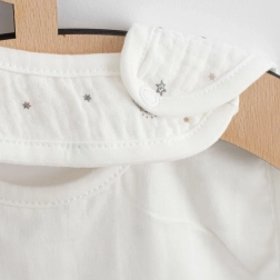 - Mussola traspirante – materiale morbido e leggero, ideale per la pelle sensibile.