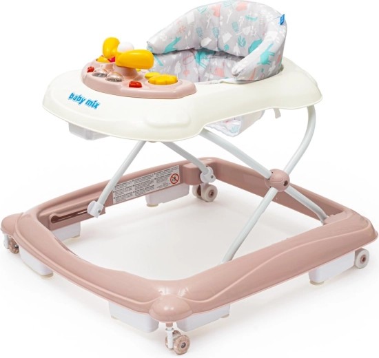 Il girello BABY MIX è progettato per bambini dai 6 mesi e combina divertimento con un supporto sicuro durante l’apprendimento della camminata. Il pannello multimediale con effetti luminosi, clacson e volante girevole motiva al gioco attivo e sviluppa motricità e sensi. Il sedile con morbida imbottitura è facilmente removibile e lavabile, per una manutenzione semplice.