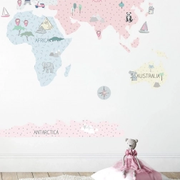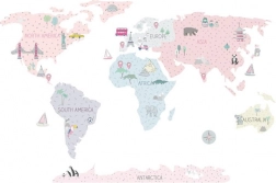 La mappa del mondo rosa in misura L è una decorazione da parete elegante e al tempo stesso pratica per la cameretta. I colori pastello tenui si adattano perfettamente agli interni moderni e favoriscono un’atmosfera piacevole per il gioco e lo studio. I bambini imparano in modo naturale a conoscere continenti, oceani, punti cardinali e famosi monumenti.