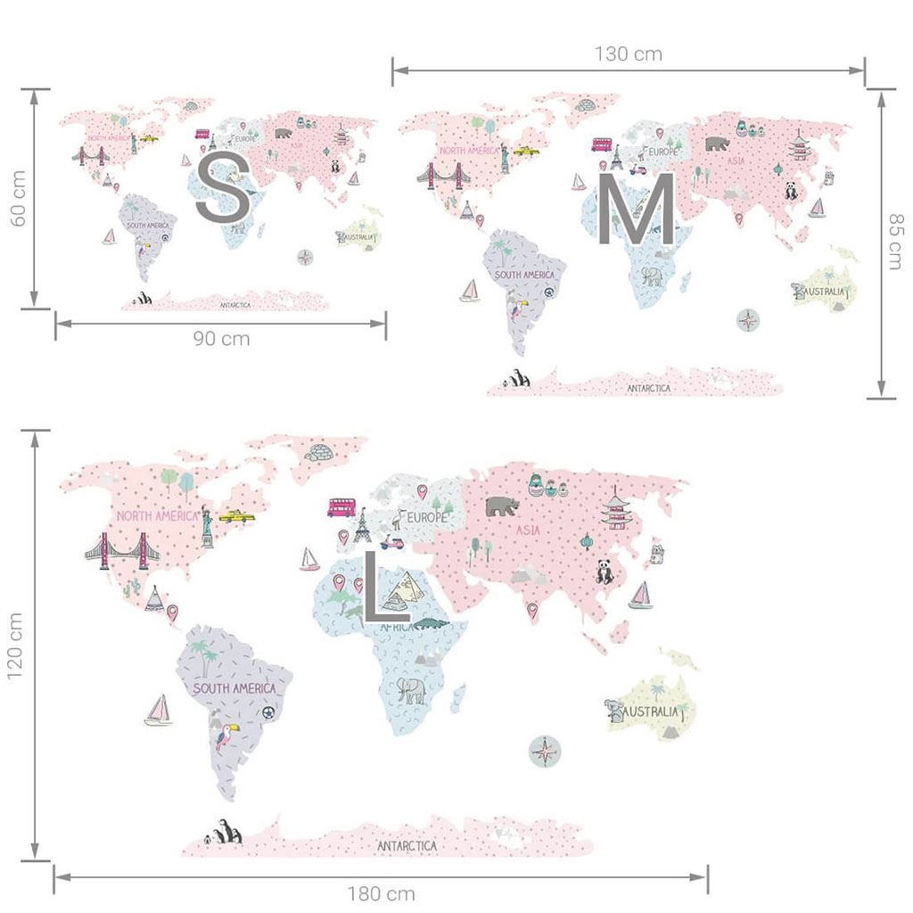 Scopri la magia dell’apprendimento giocando con il bellissimo adesivo da parete mappa del mondo L in tonalità pastello rosa. Questa decorazione in stile scandinavo ravviva ogni cameretta, porta elementi educativi (continenti, oceani, punti cardinali, monumenti) e grazie al laminato opaco è resistente ai graffi e facile da applicare. Ogni elemento è ritagliato singolarmente per una facile applicazione anche in spazi più ampi.