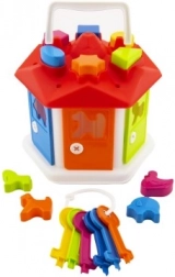 La casetta ad incastri è pensata per i più piccoli, affinché imparino in modo divertente a riconoscere diverse forme geometriche e colori. È composta da una casetta con aperture sul tetto per inserire le singole forme in plastica. Le porte colorate si aprono con le chiavi, offrendo un ulteriore livello di interazione e promuovendo pazienza e problem solving.