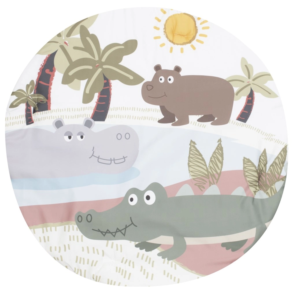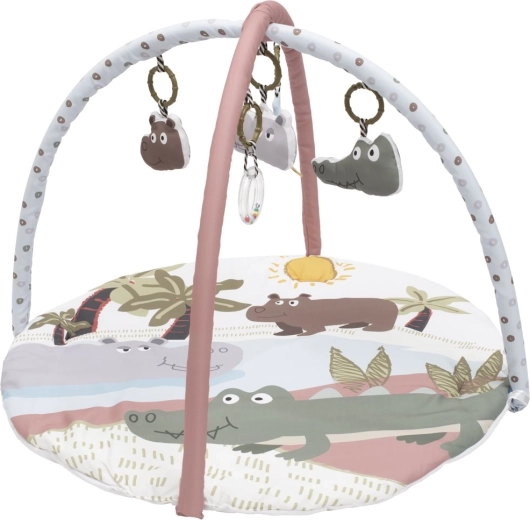 La palestrina Baby Mix Sahara Animals crea un ambiente piacevole e stimolante per i neonati dai 3 mesi. Grazie alla superficie soffice e vellutata è ideale per i primi esercizi a pancia in giù e per il relax sulla schiena. Il cuscinetto poggiatesta rimovibile aumenta il comfort e i giocattoli sospesi possono essere tolti in qualsiasi momento e usati anche fuori dal tappetino.