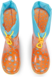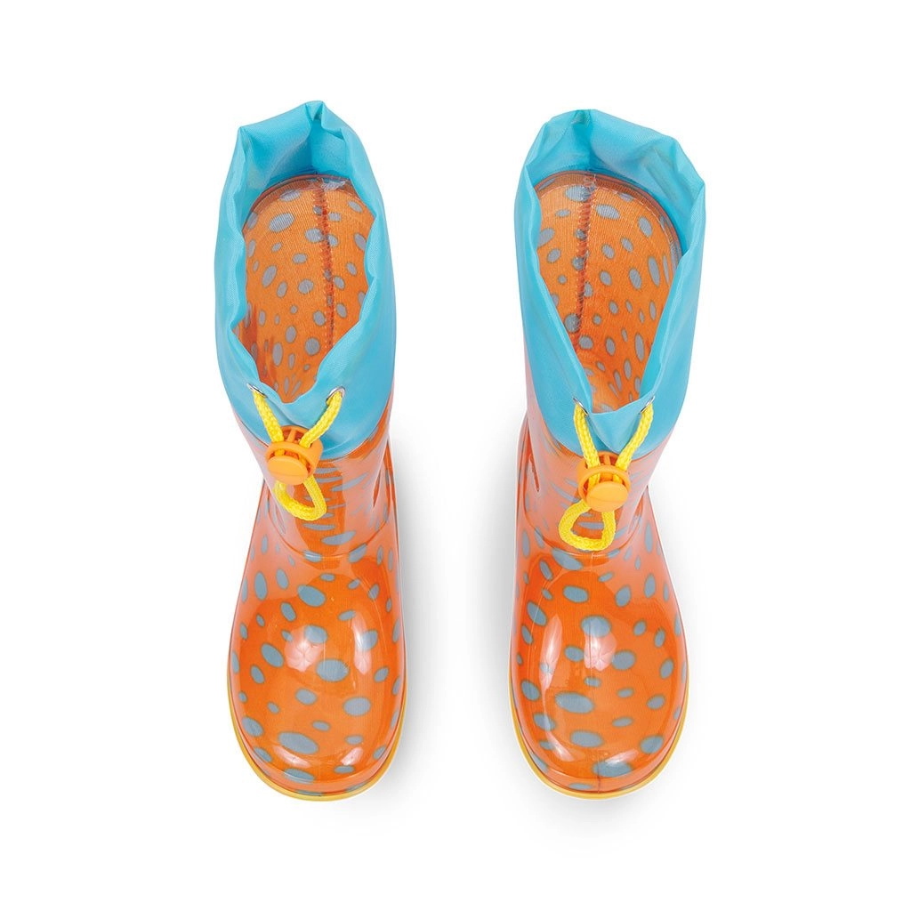La tomaia in gomma e il bordo rialzato mantengono i piedini asciutti anche saltando nelle pozzanghere.