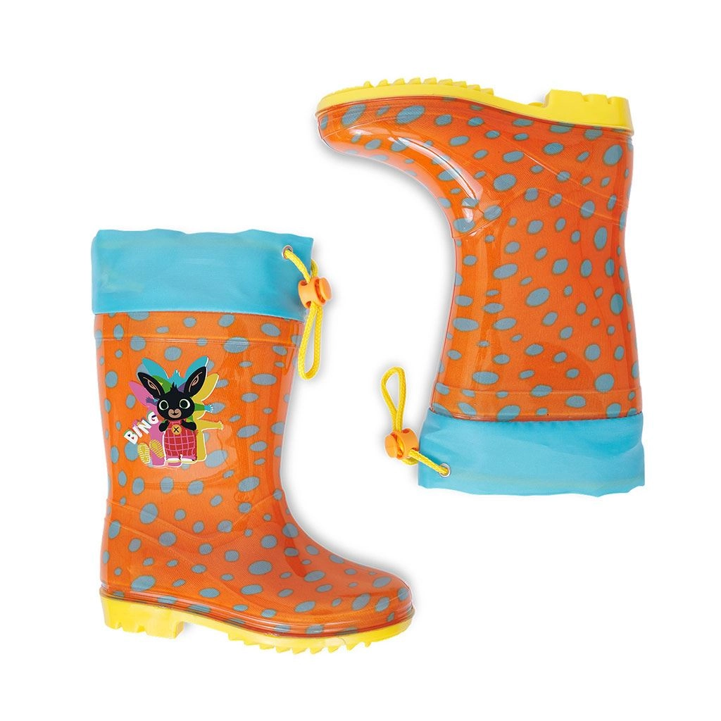 Allegri stivaletti per bambini con motivo BING mantengono i piedini asciutti sotto ogni pioggerellina. Hanno una tomaia in gomma impermeabile, suola antiscivolo e polsino regolabile con coulisse per una migliore aderenza e comfort.