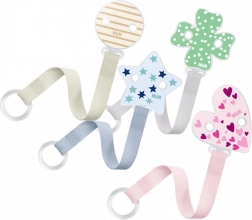 Basta con succhietti sporchi o smarriti. La cinghia per succhietto NUK è progettata per la comodità di genitori e bambini: rimane saldamente fissata ai vestiti e grazie all'anello flessibile è compatibile con la maggior parte dei succhietti, inclusi i modelli senza anello. Fin dai primi giorni di vita garantisce igiene al bebè e tranquillità ai genitori.