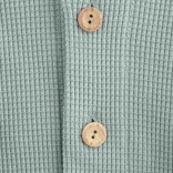Il materiale in 100% cotone è piacevole sulla pelle sensibile dei bambini, traspirante e adatto a un utilizzo durante tutto l’anno. La pratica chiusura a bottoni facilita la vestizione e i bottoncini in legno donano alla giacca un tocco unico.