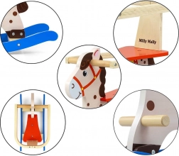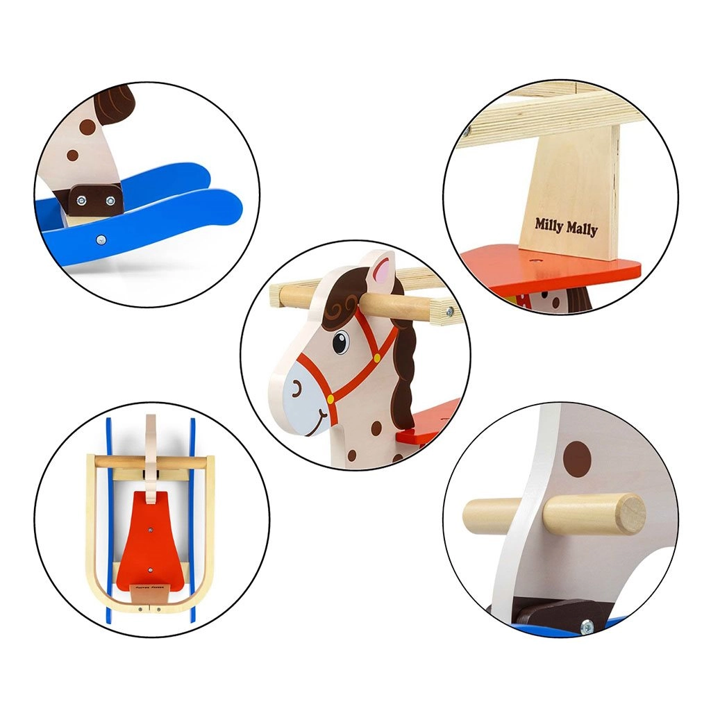 Il dolce cavalluccio a dondolo in legno MILLY MALLY Lucky è ideale per bambini da 12 a 36 mesi. Offre un dondolio stabile e sicuro grazie alle barriere di sicurezza, maniglie e poggiapiedi. La solida struttura in legno con vernice ecologica e pattini profilati protegge il bambino dalle cadute e offre tanto divertimento, favorendo lo sviluppo dell’equilibrio.