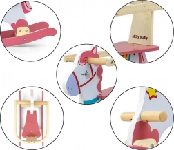 Cavalluccio a dondolo in legno Lucky con protezione di sicurezza – rosa