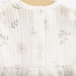 La mussola in 100% cotone è nota per la sua morbidezza, resistenza e facilità di cura: a ogni lavaggio diventa ancora più morbida e piacevole. La pratica chiusura a bottone a pressione sul retro facilita il cambio anche con i bebè più vivaci.