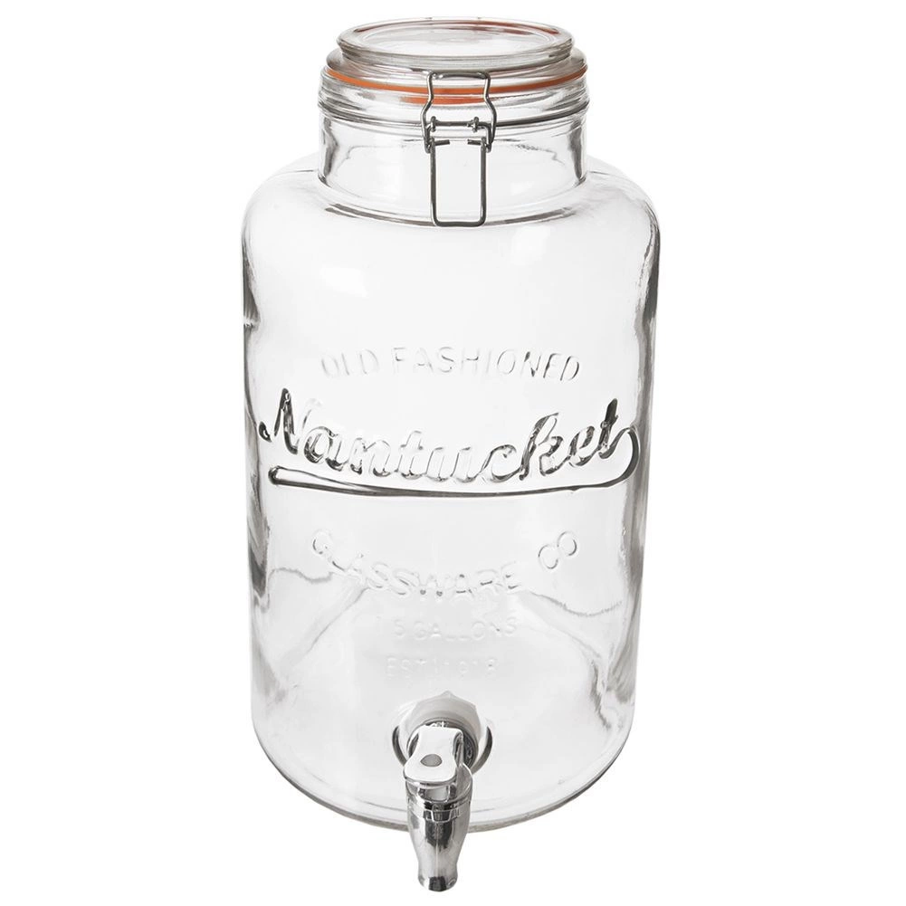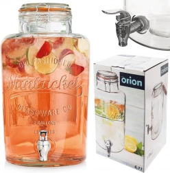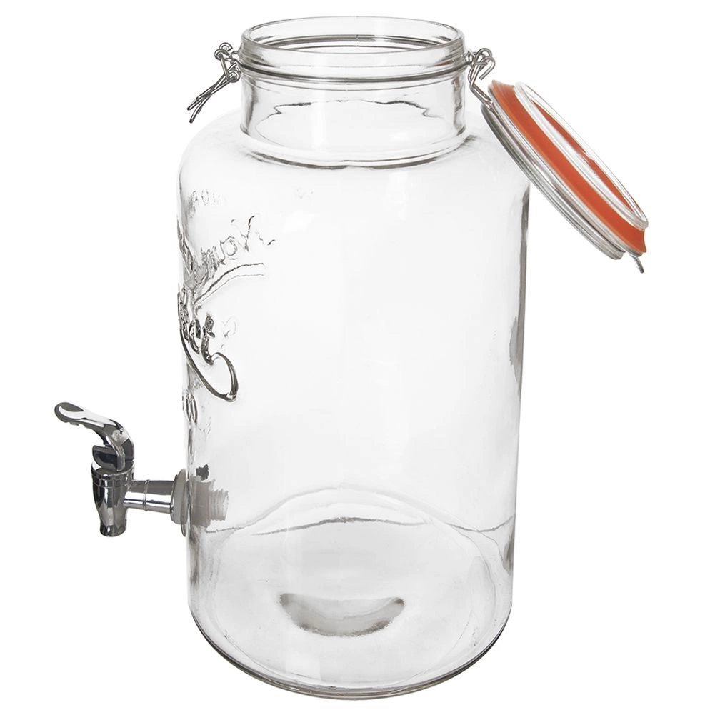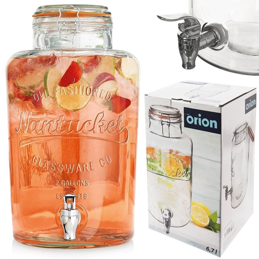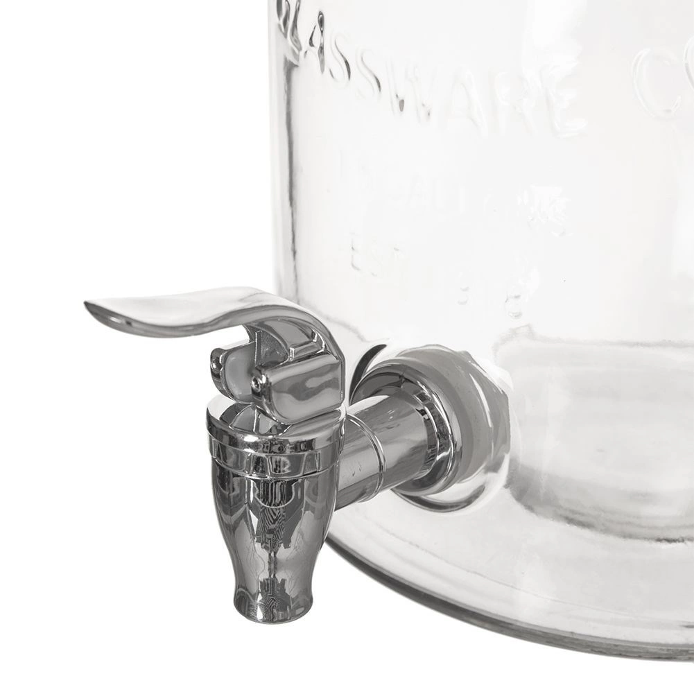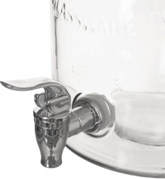 Elegante dispenser per bevande in vetro con capienza di 6,7 l, dotato di rubinetto in metallo e coperchio ermetico con clip, ideale per limonata fatta in casa, acqua aromatizzata alla frutta e tè freddo. L’ampia apertura facilita il riempimento e la pulizia; il vetro spesso e resistente con rilievo valorizza il contenuto, mentre il coperchio con guarnizione in silicone protegge le bevande dagli insetti.