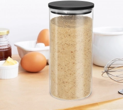 La forma cilindrica minimalista con corpo trasparente consente di vedere facilmente quantità e contenuto. Il barattolo può essere lavato in lavastoviglie (senza coperchio), per una manutenzione rapida e igienica.