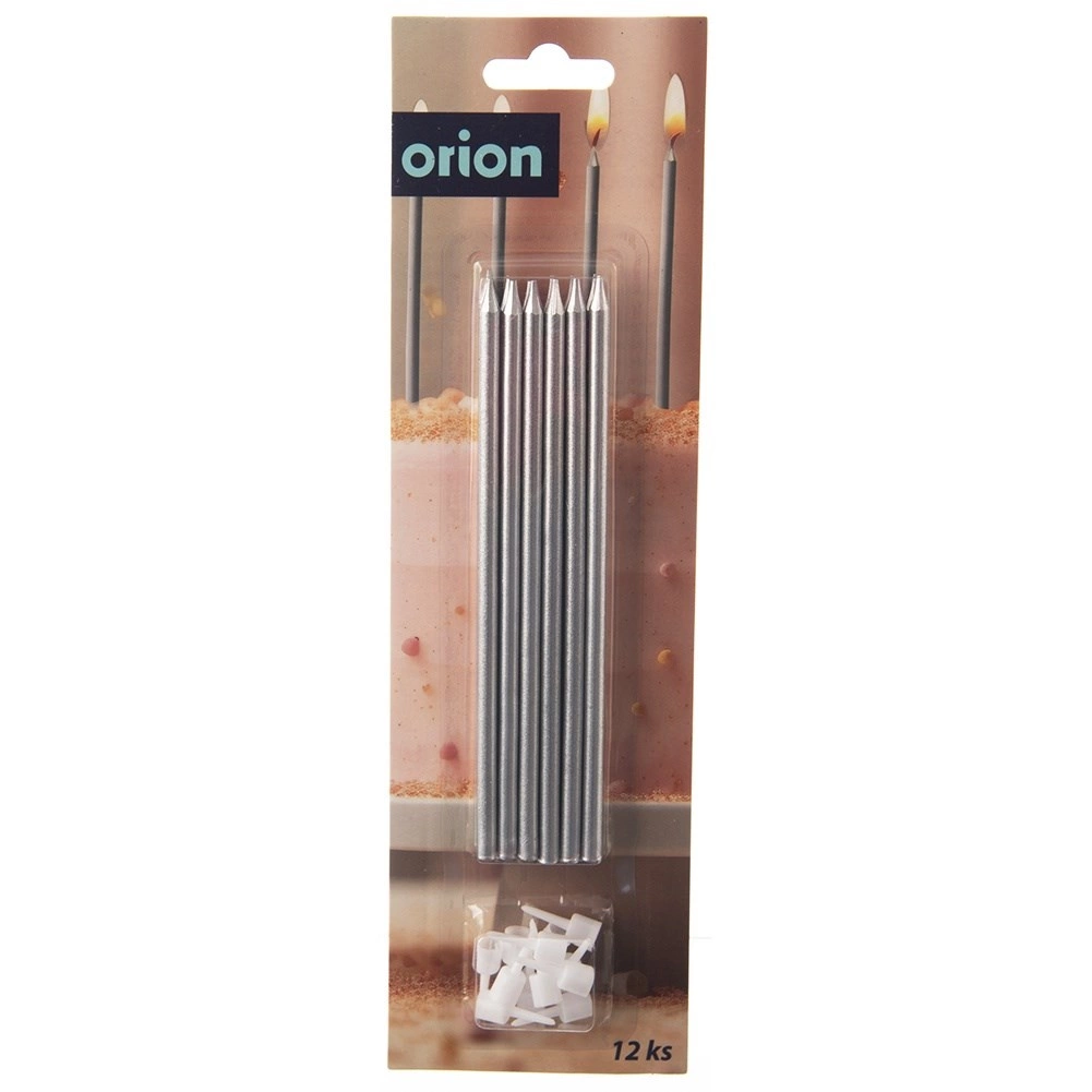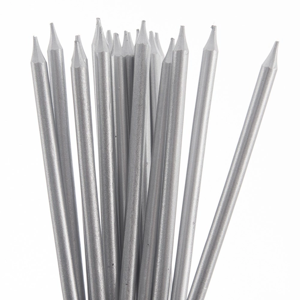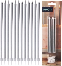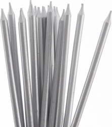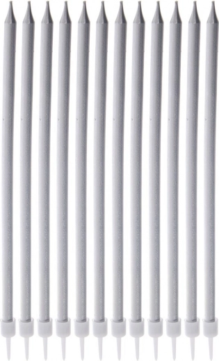 Lunghe candeline argentate per torta 14,5 cm, 12 pz