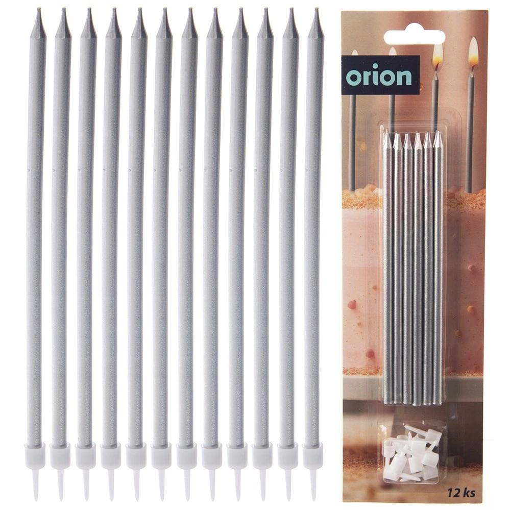 Elegante set da 12 candeline lunghe per torte in colore argento metallizzato, altezza 14,5 cm, ideali per torte e dessert festivi. Inclusi supporti in plastica bianca per un fissaggio stabile. Il design fresco e l'altezza scenografica donano a ogni festa un aspetto straordinario. Il colore argento universale si abbina a qualsiasi torta.