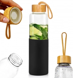 Bottiglia in vetro elegante e resistente che aiuta a mantenere una corretta idratazione a casa, in ufficio e in viaggio. Il vetro borosilicato tollera meglio le variazioni di temperatura, così potrai gustare senza pensieri acqua, limonata, smoothie e tè caldo. Il tappo in bambù con passante consente un trasporto comodo e l’aggancio.